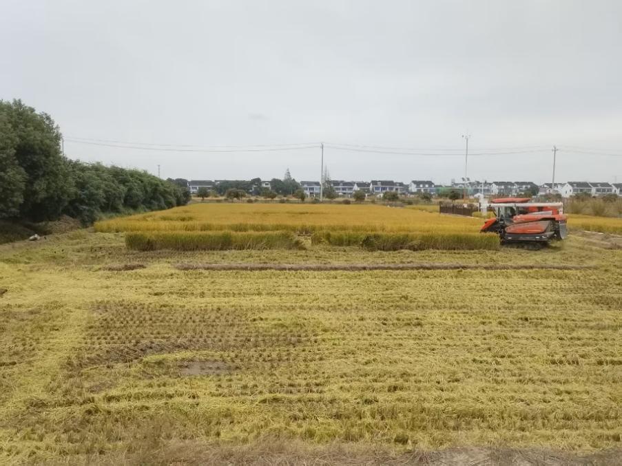 在测产现场,有机覆膜稻田根据测产要求进行机收实测,测产专家严格检查收割机储粮仓,准确丈量实收面积,多次校磅,专人称重,分批测定稻谷含水率,按粳稻14.5%折算实际产量——昆山基地不覆膜栽培的田块实收有机‘南粳46’平均亩产423.2公斤,覆盖生物降解地膜的田块实收有机‘南粳46’平均亩产483.0公斤;靖江基地不覆膜栽培的田块实收有机‘南粳5055’平均亩产379.9公斤,覆盖生物降解地膜的田块实收有机‘南粳5055’平均亩产427.4公斤。覆膜稻田产量显著高于不覆膜的对照田块。