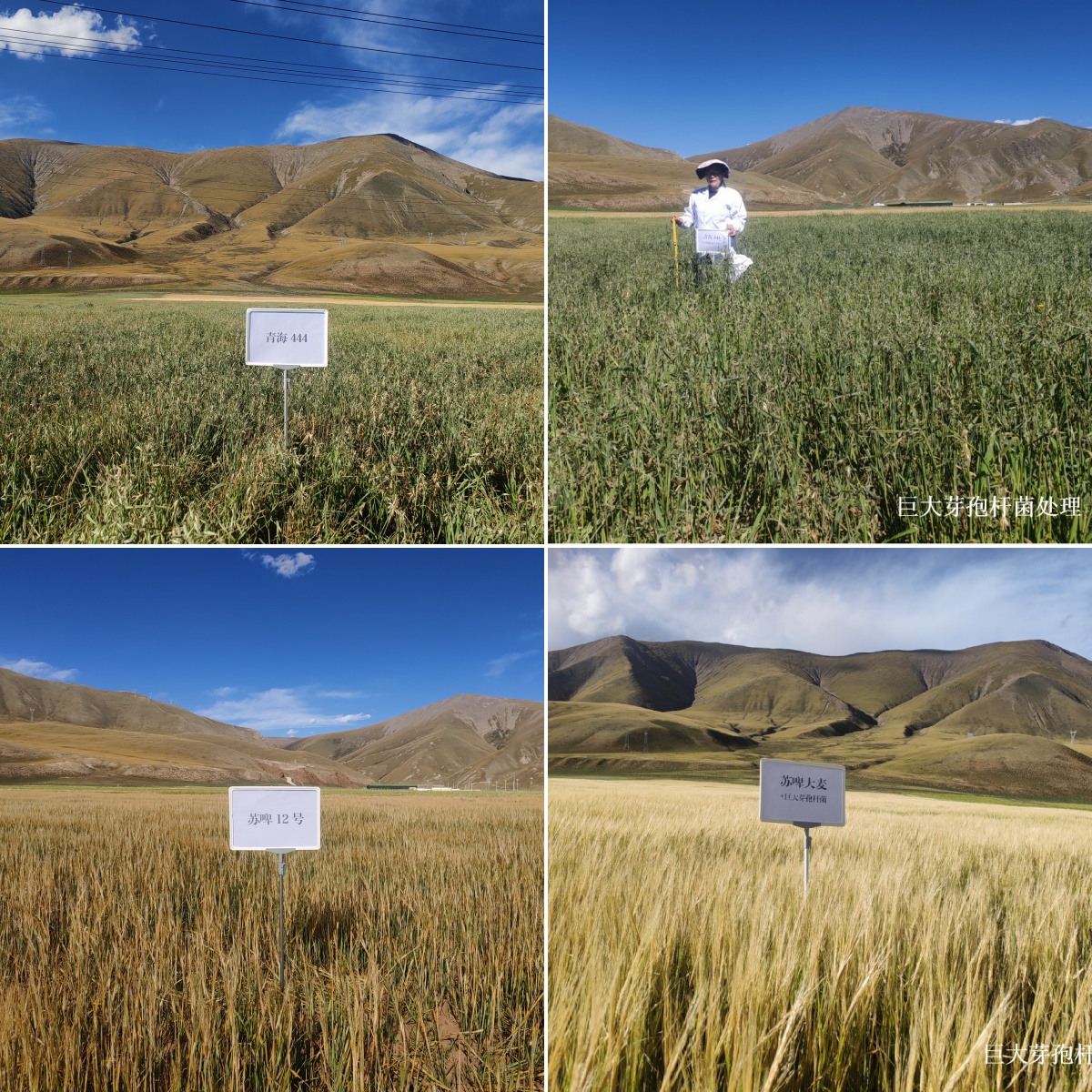 在治多县海拔4200米的百亩牧草种植示范地,吴娟子同玉树州动物疫病防控中心、治多县畜牧兽医站工作人员进行了联合测产,现场测产结果表明,我院选育的‘苏牧6号’多花黑麦草新品系、‘苏啤12号’大麦和青海本地优选品种‘青海444’燕麦长势良好,平均鲜草产量504~789公斤/亩,三者鲜草产量无显著差异;我院自主研制的巨大芽孢杆菌液体菌肥BM18-2在高寒高海拔地区增产效果显著,使用后显著提高‘苏啤12号’和‘青海444’的植株高度、植株覆盖度和鲜草产量,平均鲜草产量提高30.8%以上。