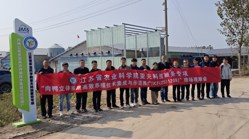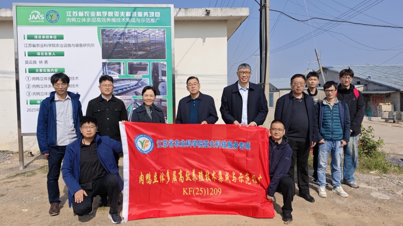 10月28日,由装备所牵头的2025年度亚夫科技服务专项“肉鸭立体多层高效养殖技术集成与示范推广”项目启动会在邳州顺利召开。院成果转化处党支部书记刘永锋,装备所所长袁爱萍、副书记吴云良出席会议。会议特邀江苏省农业机械技术推广站史志中研究员、扬州大学动物科学与技术学院徐琪教授、农业农村部南京农业机械研究所夏先飞研究员、南京农业大学工学院王永健副教授、徐州市农业农村综合服务中心陈鹏副主任等到会指导,邳州市农业农村局、邳州市农机推广站、燕子埠镇政府、邳州天成食品有限公司、项目团队核心成员参加会议。会议由装备所副所长柏宗春主持。
