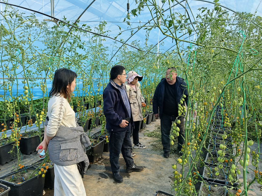 在江苏楠航农业科技有限公司,专家实地察看多层覆盖大棚番茄长势。前期低温天气下,基地采纳专家建议,通过多层覆盖与临时增温组合措施,保障番茄顺利生长,目前已进入采收期,经济效益良好。专家现场提醒,要动态调整覆盖物管理,强化日间通风排湿,降低病害发生风险,巩固种植成效。