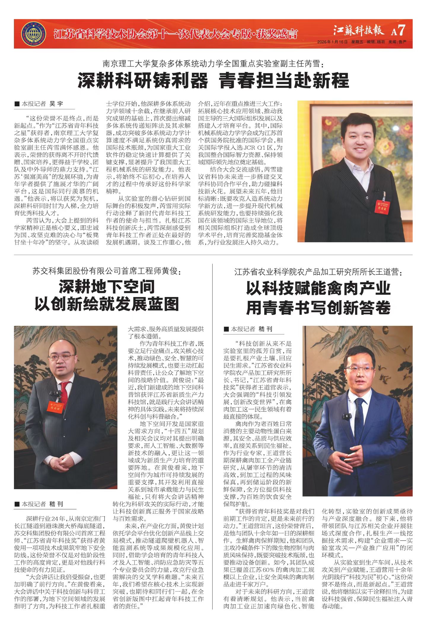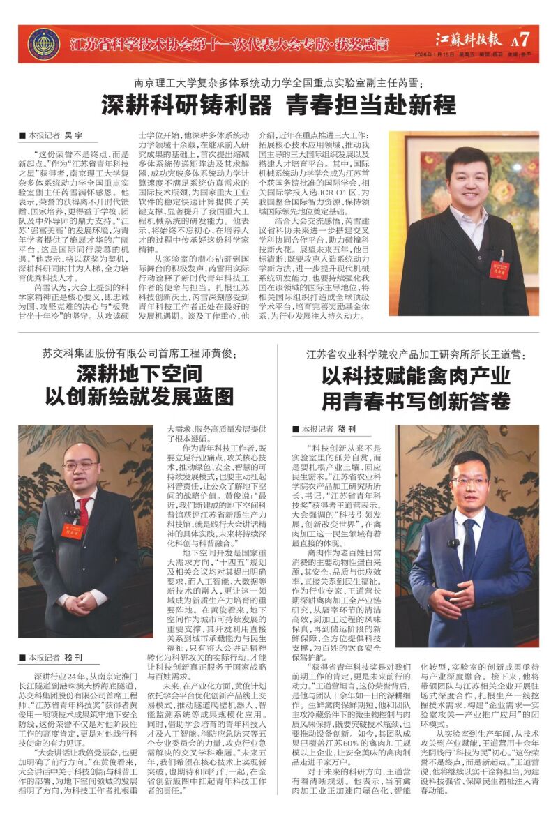 [江苏科技报]江苏省农业科学院农产品加工研究所所长王道营: 以科技赋能禽肉产业用青春书写创新答卷