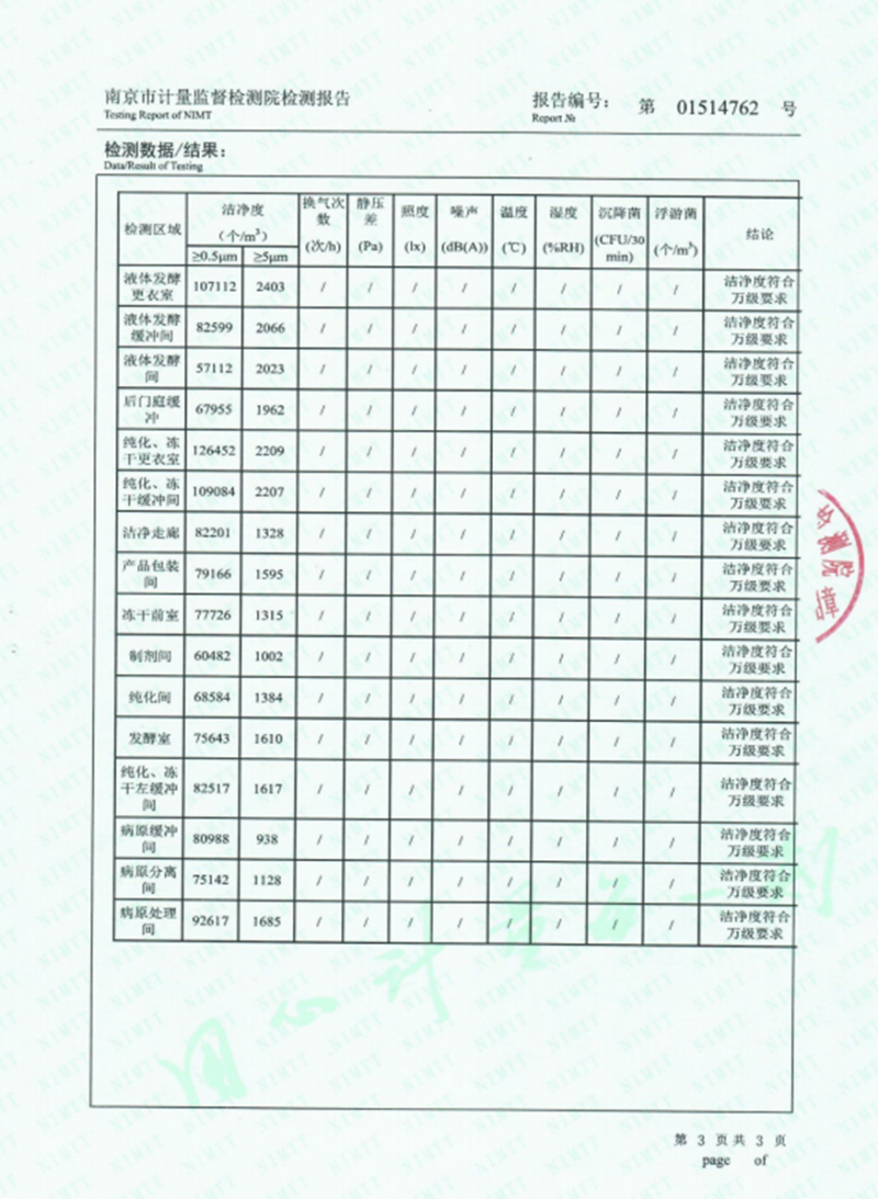 净化等级经第三方检测达到万级标准