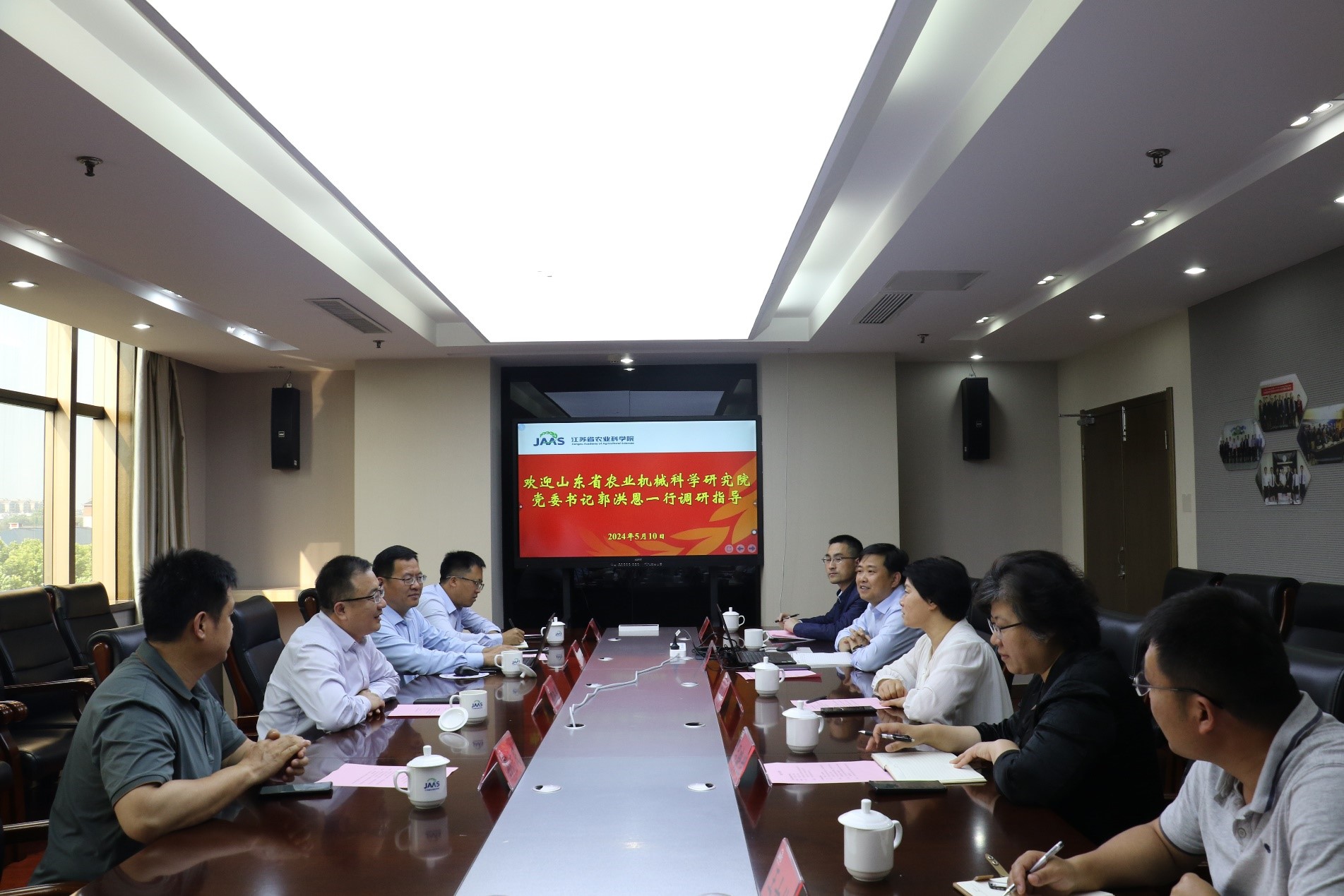 5月10日,山东省农业机械科学研究院党委书记郭洪恩一行来院调研交流。副院长、党委委员王冉出席座谈,装备所相关负责同志及科研骨干参加交流。