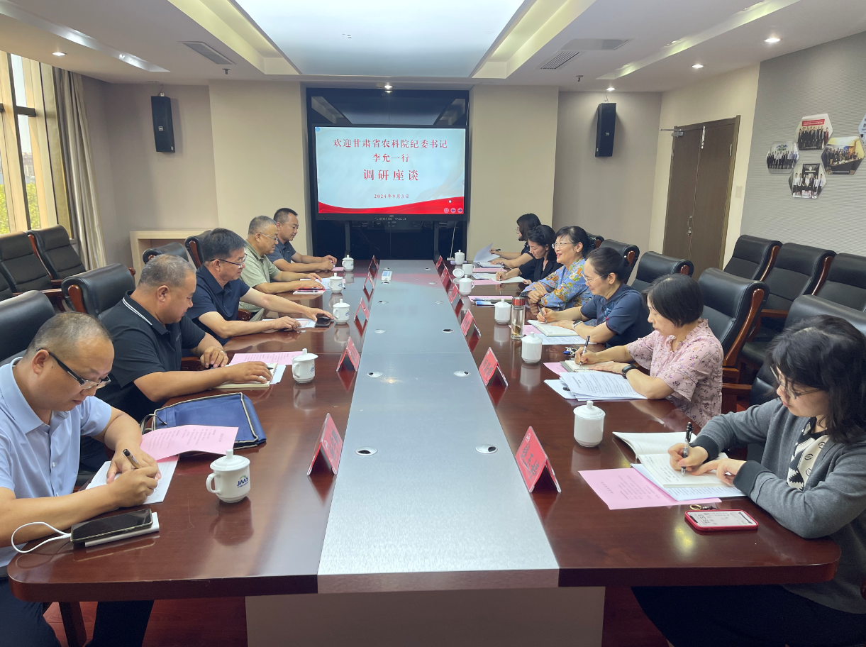 9月3-4日,甘肃省农科院党委委员、纪委书记李允一行来我院调研交流,院党委委员、纪委书记、派驻监察专员王海艳主持接待。