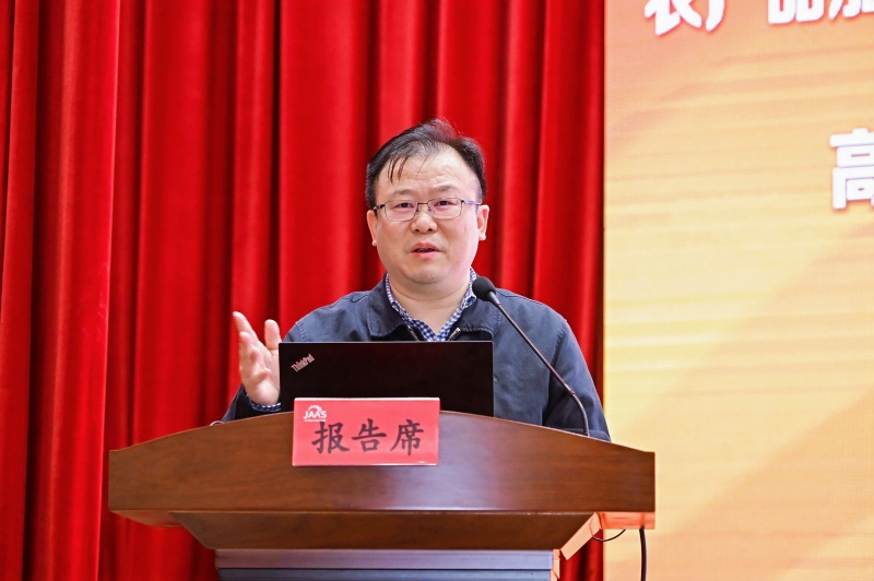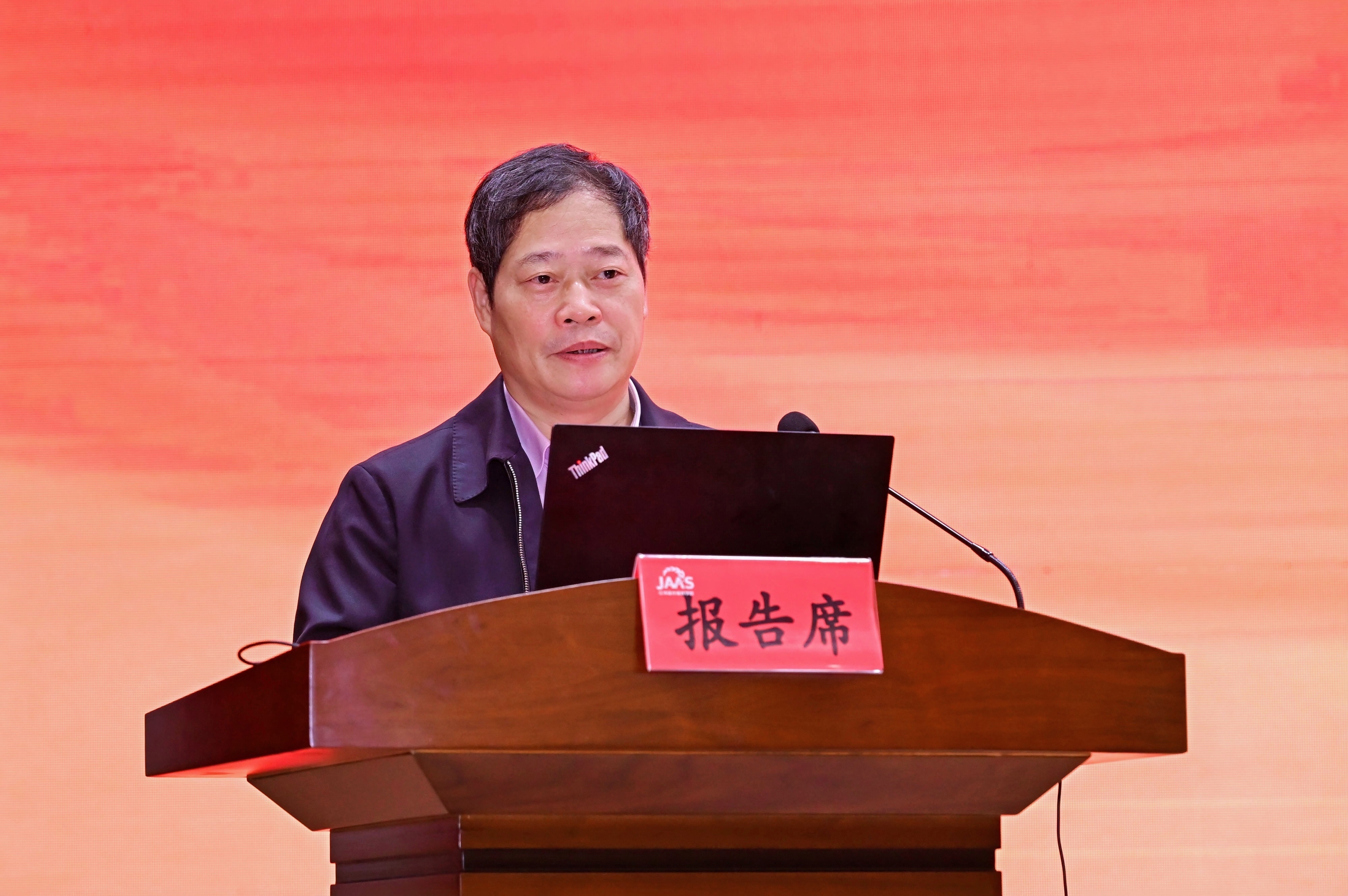 易中懿代表江苏省农业科学院致辞。他对与会嘉宾表示诚挚欢迎,对长期关心支持我院事业发展的各界朋友表示衷心感谢。他介绍了我院近年来在农产品加工学科建设上取得的成绩,并提出三点建议:一是加大与企业的融合创新力度,前置技术转移节点,即研即推,边创边推,更好的服务产业发展;二是关注我国庞大的土特产资源,在坚持技术视角创新的同时,也要关注不同用途、特色产业的个性化加工需求;三是加强学科的交叉融合,以新一代信息技术为主导,以现代生物技术,能源技术和材料技术为底盘。最后,易中懿希望本领域的专家学者能依托我院投资建设的农产品加工创新港,进一步深化全方位合作,共同打造政产学研协同融合、绿色开放共享的创新平台。