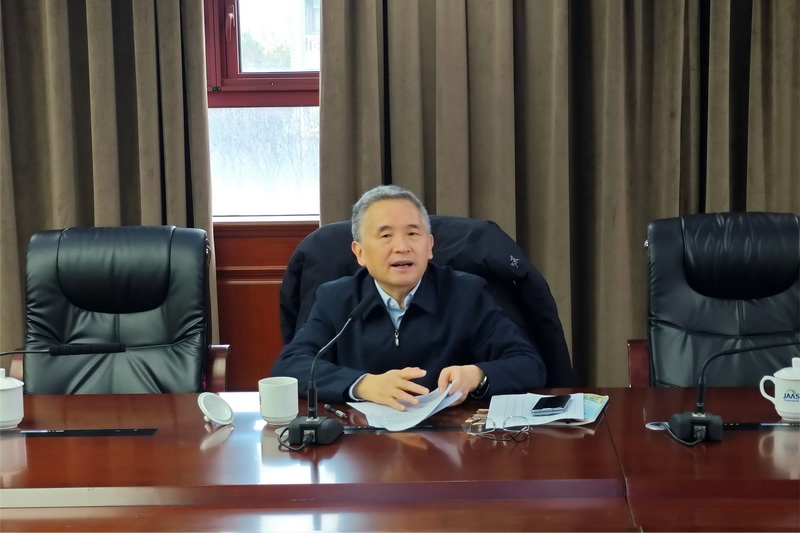 孙洪武指出,现代农业科技试验示范基地建设是畅通农业科技成果转化、推动粮油作物单产提升的关键抓手,更是我院服务黄淮地区农业高质量发展的重要举措。全院要提高政治站位,深刻把握基地“四大功能定位”,摒弃“等靠要”思想,把成果入驻作为科技成果转化重点任务抓实抓细,将科研优势转化为产业发展实效。他强调,各单位要聚焦粮油单产提升关键环节,紧扣基地建设核心目标,严把成果质量关,精准梳理农业农村部主责项目产出成果,确保成果契合基地定位、匹配区域生产需求。各所要强化协同联动,凝聚全院“一盘棋”合力,高标准完成成果征集申报。孙洪武对后续工作提出三点要求:一是压实责任,明确分工、节点与标准,务实制定实施方案;二是精准对接,提前赴基地实地调研,优化示范方案与技术保障计划;三是强化落地,做好成果评审论证,统筹落实人才、技术、资金等配套支撑。