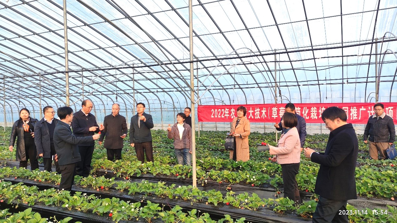 11月14-15日,根据实施方案,院果树所在涟水举办2022年农业重大技术(草莓轻简化栽培)协同推广计划项目中期汇报与观摩会,省农业农村厅科教处副处长黄银忠、南京农业大学房经贵教授、南京农科所曹荣祥研究员、院成果处处长顾军、财务处处长李国锋组成项目中期检查小组,果树所副所长项目推广首席乔玉山、科教首席赵密珍、项目骨干、院亚夫服务高沟站成员等共同参会。