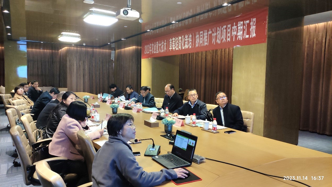 赵密珍围绕项目组织管理、实施进展、绩效目标完成、经费执行、存在问题和下阶段工作计划等逐一汇报;乔玉山现场介绍了专家指导站、专家工作室运行和示范基地建设、重大技术推广应用情况。