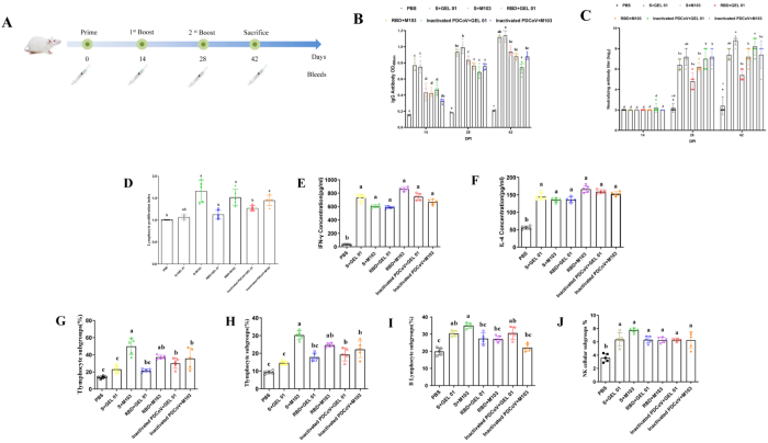 研究人员通过设计和优化基因序列,用杆状病毒表达系统分别表达了PDCoV S和RBD蛋白,证实这两种蛋白均以三聚体形式表达。将纯化的蛋白分别与Gel 01佐剂和新研发的M103佐剂乳化制备成疫苗,免疫小鼠后检测IgG和中和抗体,分析淋巴细胞增殖指数、CD3+CD4+ T淋巴细胞亚型、CD3+CD8+ T淋巴细胞亚型、B淋巴细胞和NK细胞等,发现S+M103疫苗组诱导的免疫应答水平高于RBD亚单位疫苗和PDCoV灭活疫苗。