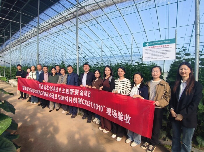 在现场验收环节,与会专家与项目管理方在项目攻关团队陪同下,实地考察了项目研发的麦秸秆基全生物降解地膜与稻秸秆基聚氨酯发泡保温材料在生产中的应用情况。专家组听取了项目负责人徐磊的现场介绍,仔细查看了项目组开发的物化产品的应用表现,并与项目团队成员进行了现场交流与讨论。在会议验收环节,徐磊围绕项目简介、研究进展、实施成效、经费使用情况、自我评价及后续研究计划进行了汇报。专家组对项目实施情况进行了质询和讨论,并对项目既定目标与考核指标进行了逐项梳理比对,一致认为项目实施成效显著,经费使用合理,超额完成合同规定的指标任务,同意通过验收。