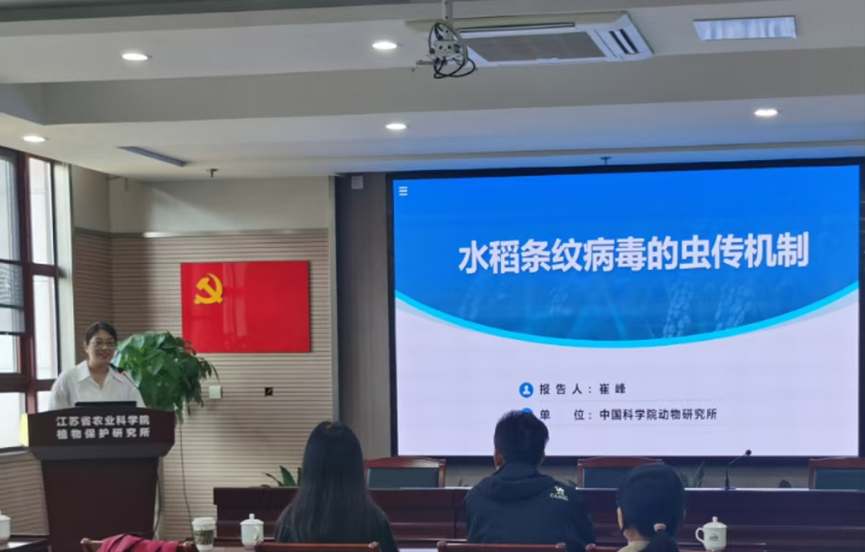 10月23-24日,中国科学院动物所崔峰研究员和微生物所张莉莉研究员应植保所水稻病毒病抗性创新团队的邀请,来植保所开展学术交流。学术交流报告会由植保所副所长纪锐主持。水稻病毒病抗性创新团队成员及相关科技人员参加交流讨论。