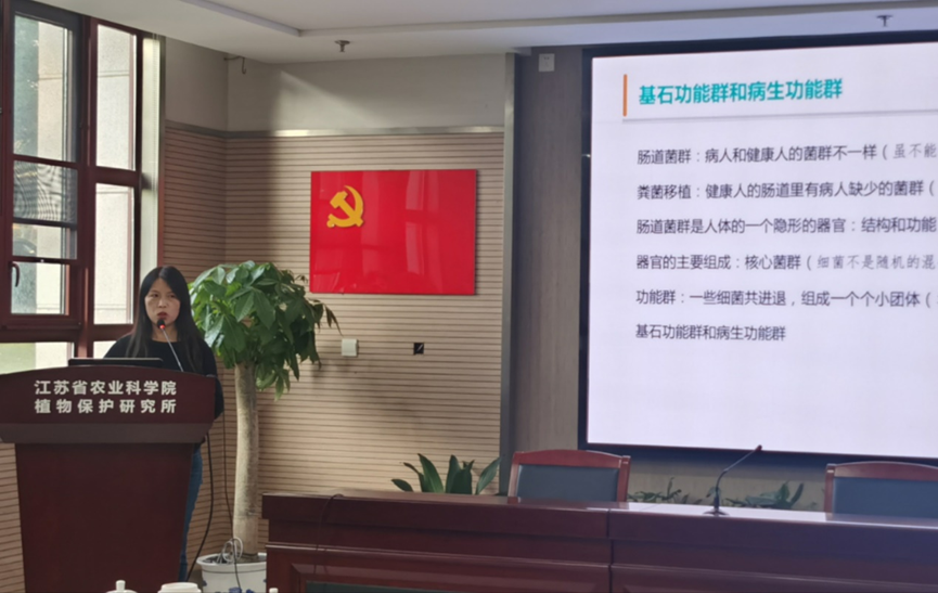 交流会上,崔峰作题为“水稻条纹病毒的虫传机制”的报告,分享了其团队的重要发现。其团队以灰飞虱-水稻条纹病毒-水稻为模式系统,从数万头灰飞虱唾液中成功分离出关键性蛋白。崔峰解析了病毒如何跨越昆虫组织屏障以及如何通过唾液腺传播至寄主植物等关键科学问题。张莉莉作题为“水稻菌群的种传机制及应用”的报告。她介绍了团队开发的一套基于细菌16S rDNA特异性引物对的定量分析方法。该方法简便、经济,对植物内生细菌组核酸水平的检测具有重要意义,有力推动了植物微生物组研究。
