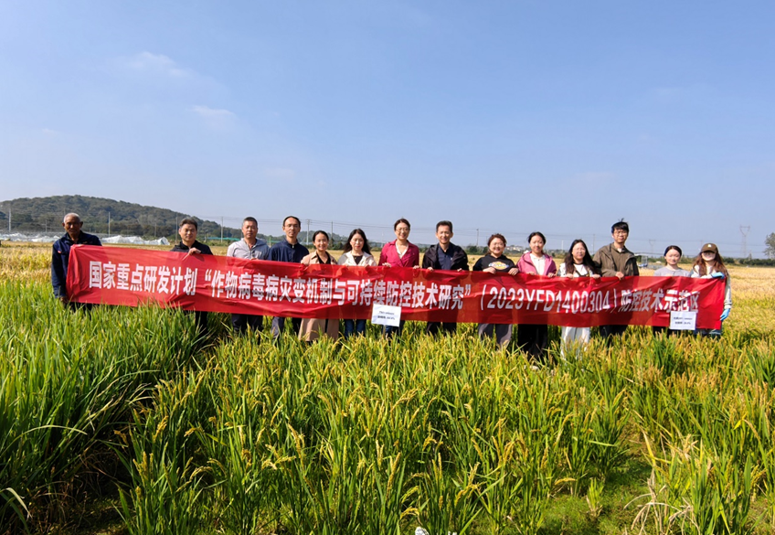 10月24日,两位专家实地考察了水稻病毒病抗性创新团队句容水稻病毒病防控技术示范区,并就南方黑条矮缩病在江苏省的发生情况及重点研发项目实施情况进行了交流。两位专家对团队在水稻病毒病可持续防控技术研究中取得的进展表示肯定,并提出了宝贵的建议。