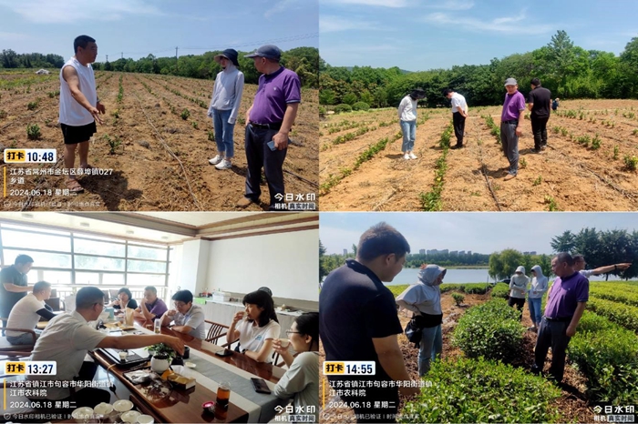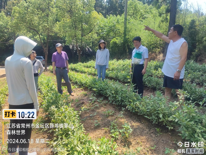 为加快推进省种业振兴“揭榜挂帅”项目——“江苏优质特色茶树新品种选育与推广”育成茶树新品种的示范推广工作,6月18日休闲所茶创新团队在常州金坛及句容两个示范点组织召开2024年度新品种示范推广现场会。省农科院休闲所副所长杨亦扬、省茶叶协会秘书长唐锁海、无锡市茶叶品种研究所所长徐德良、常州市金坛区桐春源茶叶有限公司总经理王国林等参加了现场会。