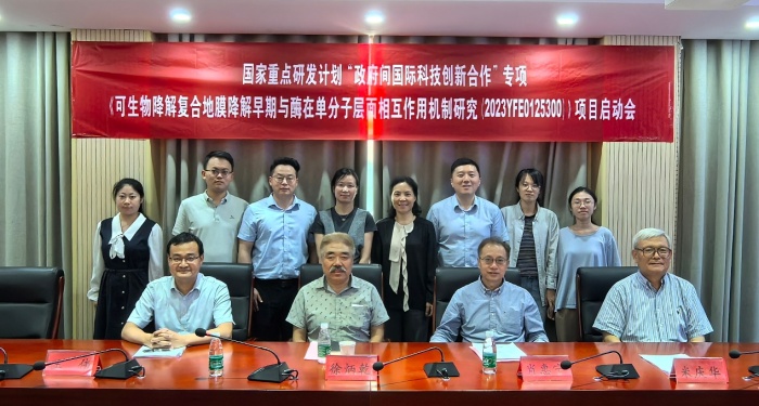 5月29日,由我院装备所承担的国家重点研发计划“政府间国际科技创新合作”专项——“可生物降解复合地膜降解早期与酶在单分子层面相互作用机制研究”项目启动会在南京召开。加拿大工程院院士肖惠宁教授、山东农业大学米庆华教授、南京大学王伟教授和江苏省科学技术厅对外合作处副处长臧颖应邀参会指导。我院国际合作处处长邹轶主持会议,美方项目负责人、装备所所长袁爱萍及项目团队成员参加会议。