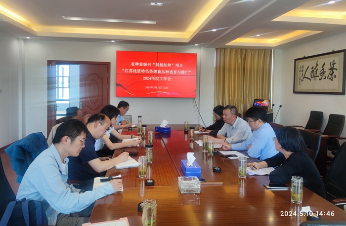 为推进省种业振兴“揭榜挂帅”项目“江苏优质特色茶树新品种选育与推广”的实施,加快省内茶树新品种选育及示范推广工作,5月10日休闲所茶创新团队在仪征市组织召开项目2024年度工作推进会。省农科院休闲所副所长杨亦扬、省茶叶协会秘书长唐锁海、无锡市茶叶品种研究所所长徐德良、扬州市绿杨春茶叶协会常务副会长张春等出席会议,会议由项目负责人杨亦扬主持。